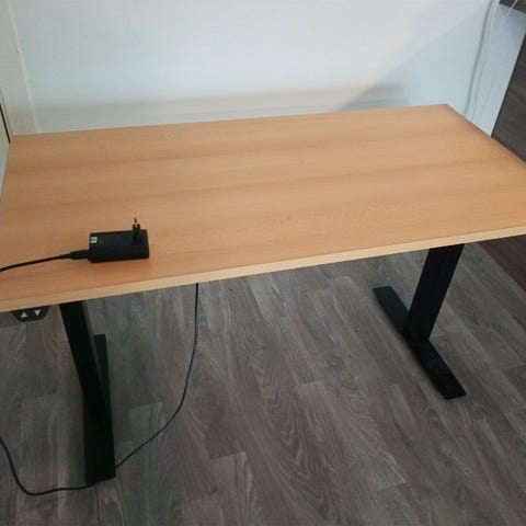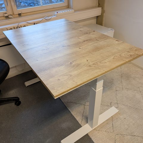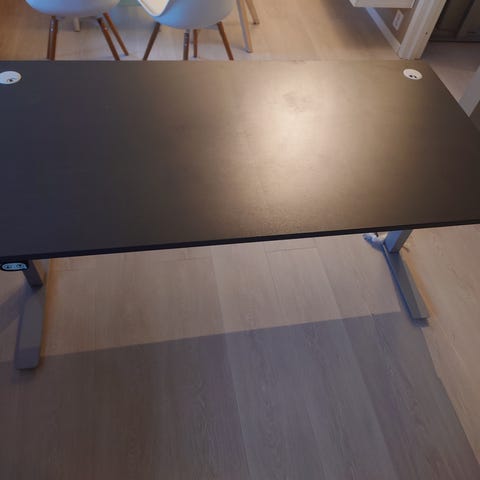 Stauning skrivebord i størrelse 80 × 160 cm, hvit utførelse, med elektrisk høydejustering fra 70 til 117 cm. Skrivebordet er oppgradert med elektrisk hev- og senkefunksjon og fremstår i god stand. Selges grunnet manglende behov for et så stort skrivebord.