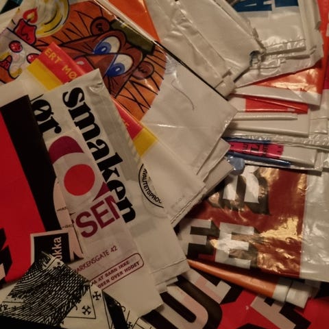 Plastposer med limstripe