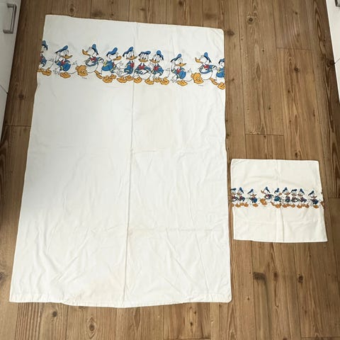 Nydelig Paddington Bear sengesett med dynetrekk og putevar/putetrekk i bomull. Merket P&Co Ltd 1999. Helt og pent i klare, fine farger. Litt falmet i bretten på den ene siden, se siste bilde.