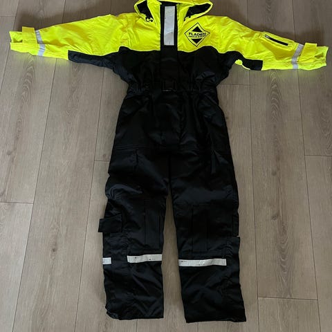 Selger floating dress fra Fladen. Kun brukt få ganger! Vanntett og varmt med floating funksjon. 2 deler, bukse og jakke. Størrelse L (Ny pris 4500 kr)