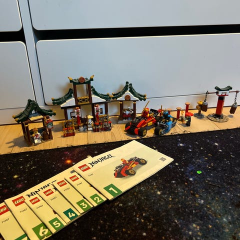 LEGO NINJAGO byggesett med flere sett og figurer inkludert. Inneholder ulike modeller fra NINJAGO-serien, blant annet kjøretøy og karakterer. Passer for bygging og samling.
