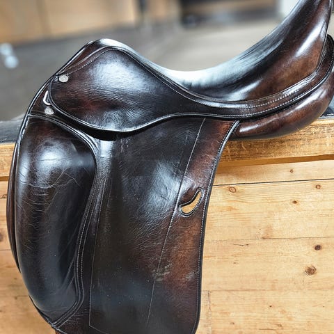 Selger en pent brukt Erreplus JD Sprangsal i 17» og bomvidde 33. Denne salen har SL paneler, og vil passe godt til hester med høy manke og store skuldre. Deler av panelene under er festet med borrelås og kan f.eks. flyttes lengre bak for å gi hesten bedre skulderfrihet. Se bilde. En sal med medium dypt sete, og kneklosser festet med borrelås.