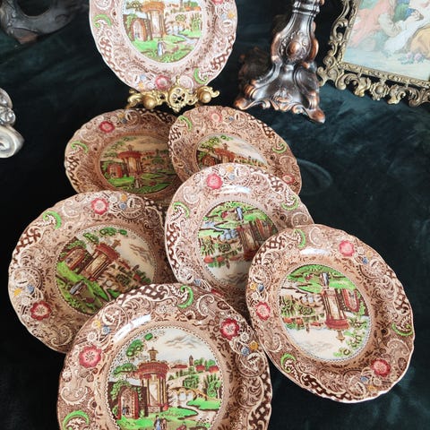 6stk Old English asjetter selges samlet for 500kr eller 100kr per asjett. Ingen synlige skader.