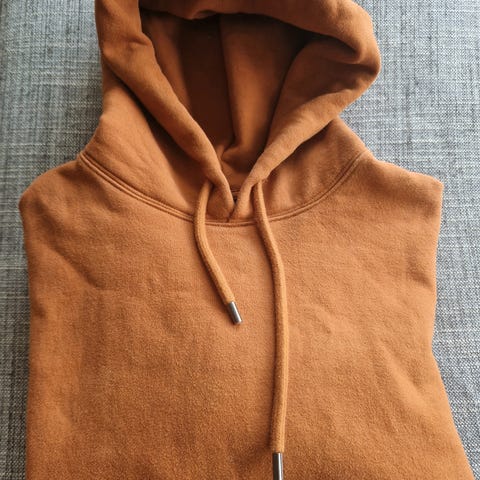 Mørkeblå hettegenser med den velkjente logoen foran.