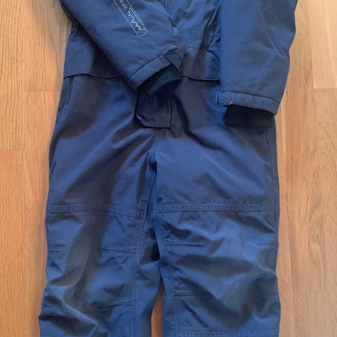 Brukt to vintre og har noen bruksmerker. Glidelåsen sliter litt men ellers så er den i god stand hvis man bruker tid. Kjøpt fra barnashus og selges for en god pris. Passer fra 4-5 år.