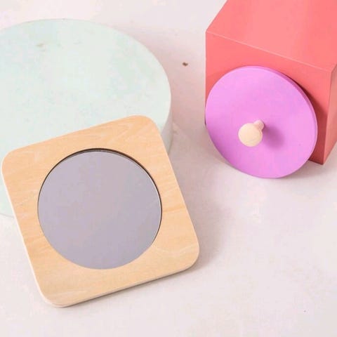 Selger deler av Lovevery the charmer playkit som vist på bilde. Speilet har fått to skader, men svart-hvit bilderamme på bakside uten skade.