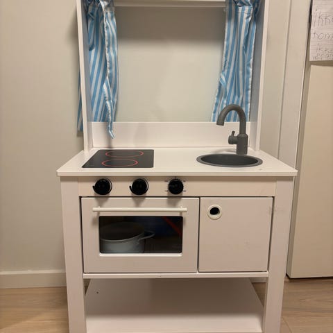 Yngri lekekjøkken. Kjøpt på Barnas hus høst -25. Veldig pent og lite brukt. Alle deler medfølger. Nypris: 1699 kr.
