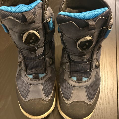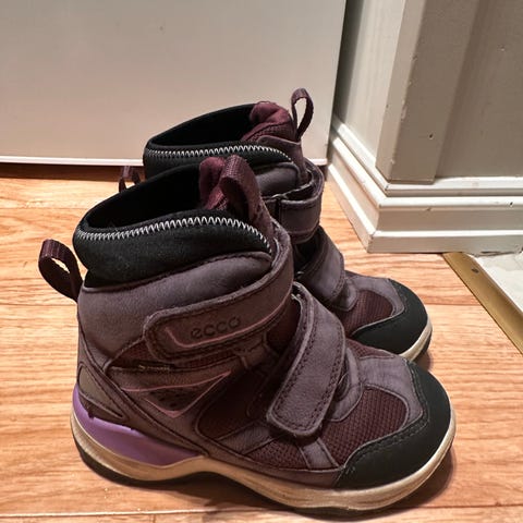 ECCO barnesko for unisex i størrelse 34. Skoene har borrelåslukking og kombinasjon av materialer i mørke farger. Egnet for barn i denne størrelsen.