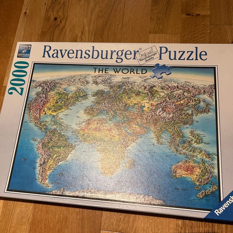 Kjøpt nytt. Brukt til et barn, men ene brikken er litt svulmet opp (se bilde, drue-brikken) og det mangler en hvit brikke (se bilde).