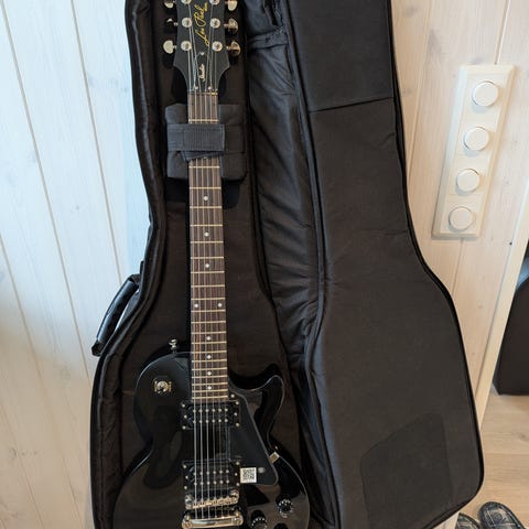 Epiphone Les Paul elektrisk gitar med svart finish og gullfargede detaljer. Designet for elektrisk gitarspill med klassisk Les Paul stil.