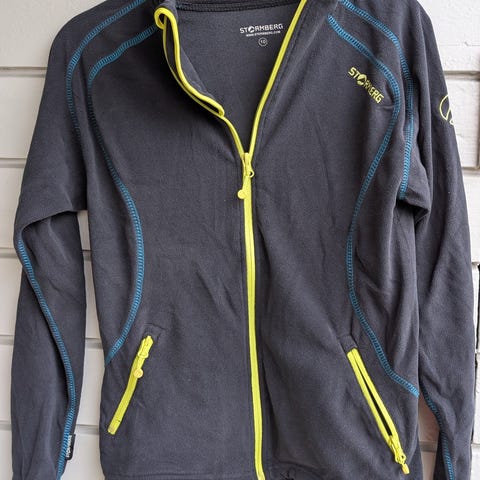 Pent brukt fleece, samt hjemme strikket ullsokker medfølger.
