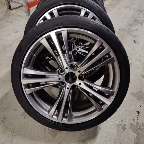 BMW 403m selges. Felgene har noen bruksmerker men er generelt pene. Felgene fulgte med bilen når jeg kjøpte den og jeg har ikke kjørt på disse selv. Stått på en BMW F31.