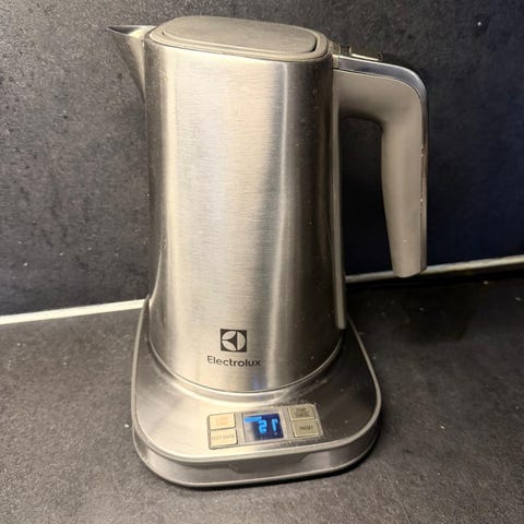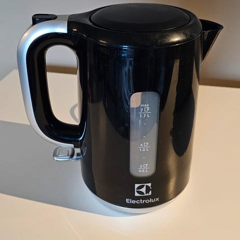 Electrolux vannkoker for 1.7 l selges. Justerbar temperatur, og flere funksjoner. Laget i børstet stål. Hentes av kjøperen.