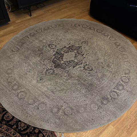 Lilla, rundt teppe 130 cm - pent brukt
