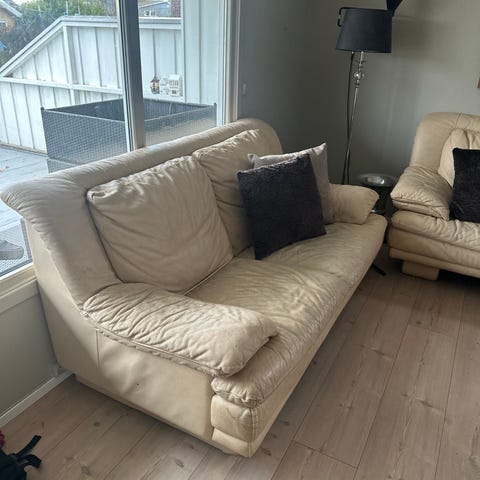 Cher sjeselong sofa høyrevendt i sort bonded skinn til salgs. Sofa (7 år gammel) er godt brukt og har begynt å få slitemerker i skinnet (se bilder), den har et rom i det venstre armlenet (se bilde) for praktisk oppbevaring.