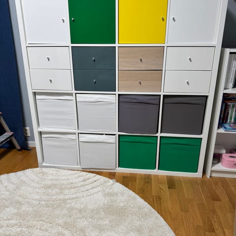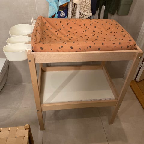 IKEA barnekommode i rosa farge med to dører og hylleplass innvendig. Laget for oppbevaring av barneklær eller leker.