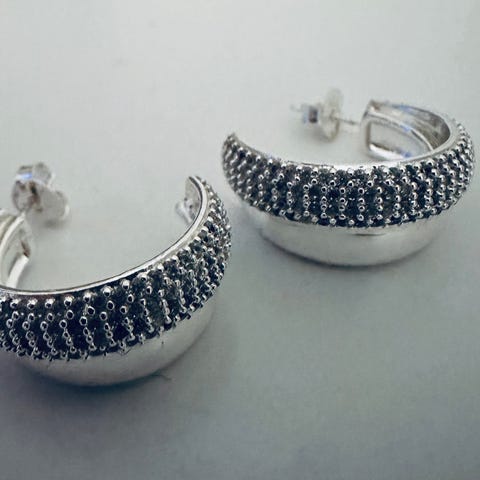 925 sølvring med stener, en stor på midten og halvveis rundt. Pent brukt. Størrelse 56.