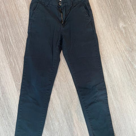 Klassisk chinos-bukse i mørk blå fra Cubus. Brukt kun 2 ganger, fremstår som ny. Behagelig passform, perfekt til både hverdag og penere anledninger.