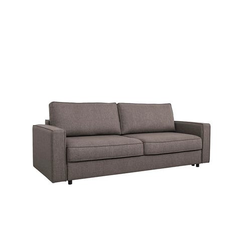 Sofaen er veldig god å sitte i. Når den legges ned til sovesofa blir den 150x200 cm.