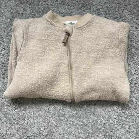 Reflex heldress for barn i størrelse 80, laget av merinoull. Fargen er beige, og plagget er designet for unisex bruk.