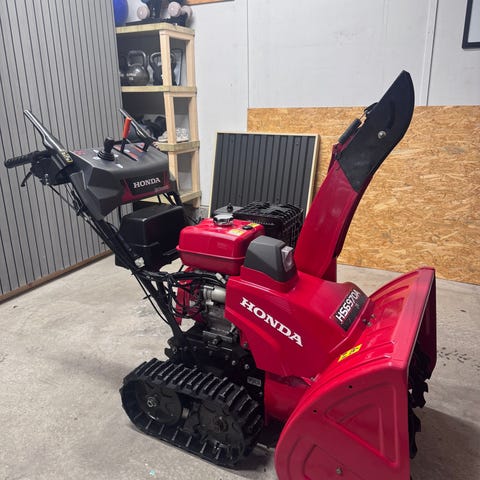 Honda HS 970 selges da jeg har oppgradert til en større modell. Den har nylig fått byttet olje, har elektrisk start, og den kaster snø godt. Den kan imidlertid gå varm ved heftig bruk. Den trenger litt WD-40 på de riktige plassene og noe maling. Generelt er den en god venn i snøfokken.