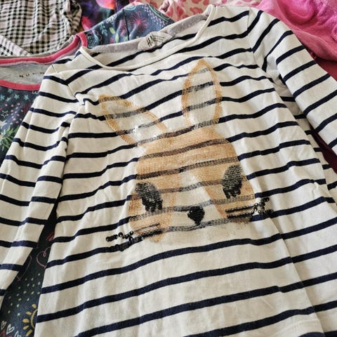 Åtte hjemmesydde t-skjorter / gensere med korte og lange ermer selges rimelig som liten klespakke ☺️ Sydd i bomullsstoff med god stretch og army / militær-mønster, av bedre kvalitet enn klærne fra «billigbutikker». Størrelse ser ut til å være mest 122 og 128, og kanskje noe 134.