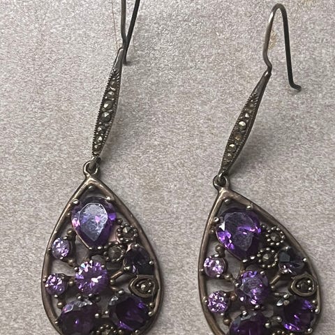 Fine gamle øredobber med skrufunksjon. Ca 3cm høye. Pent brukt. Usikker på materiale. Ingen stempel.