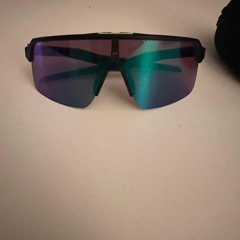 Oakley sportsbriller for unisex med blå speilglass. Brillene har et buet design som gir bredt synsfelt og beskyttelse mot sollys. Egnet for utendørs aktiviteter og sport.