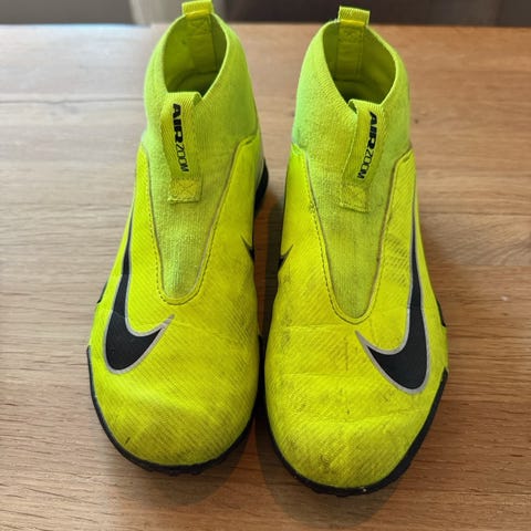 NikeTurf fotballsko str 28 i blå farge, designet for barn. Skoene har en slitesterk overdel med lukking uten lisser og en såle med knotter for godt grep på kunstgressbaner.