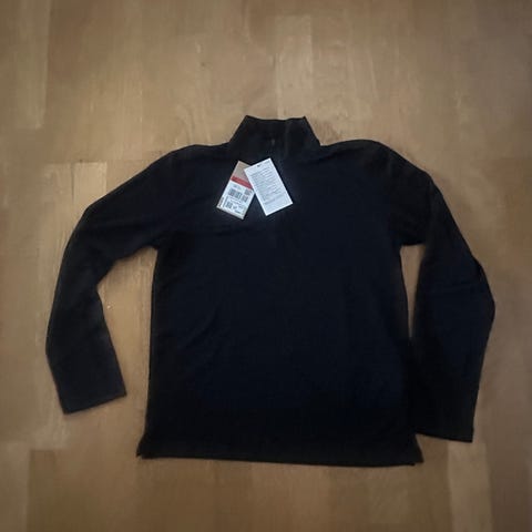 Oransje Nike Dri-FIT genser med lange ermer og stilige hvite detaljer på skuldrene. Som ny – svært lite brukt. Perfekt til trening eller fritid. Fukttransporterende materiale som holder deg tørr og komfortabel.