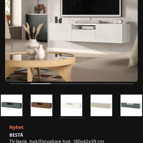 Bestå TV-benk selges da den er byttet ut med samme modell i annen farge. Benken fremstår som tilnærmet ny, med unntak av to svært små hakk som knapt er synlige. Dette er hensyntatt i prisen. Føtter må eventuelt kjøpes separat hos IKEA.