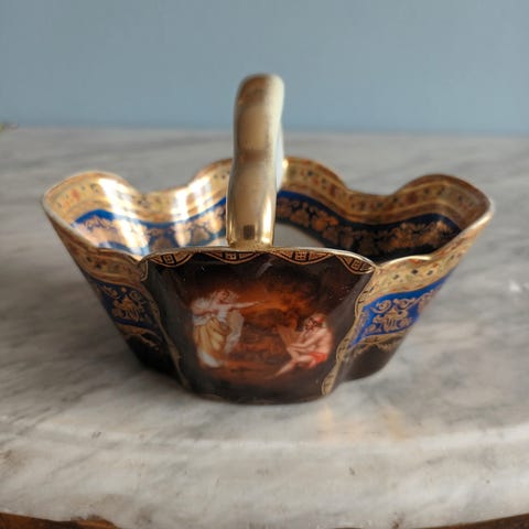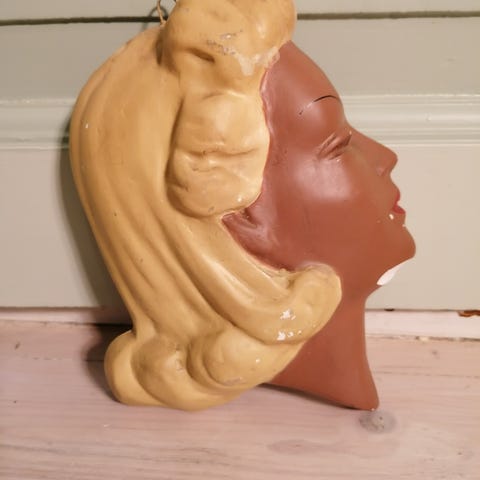 Flott damehode, ganske tung, tror det er keramikk men er usikker. Vet den er gammel, men ikke fra når. I god stand, noen småmerker pga alder. Hatten kan følge med om ønskelig. Hentes på Vessia i Porsgrunn.