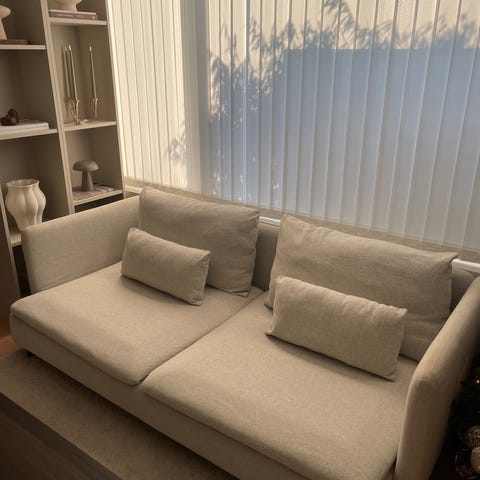 Veldig pent brukt og fremstår som nesten ny. Ingen flekker eller slitasje. Behagelig sofa med god sittekomfort og tidløst design.