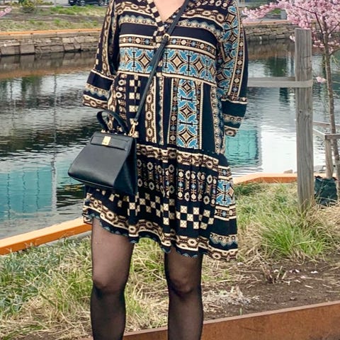 Pent/lite brukt kjole fra Floyd, str XS. Passer fint til en S også, som jeg er selv. Store, fargede blomster på sort bunn, belte i livet og vaffelstrikk på ermene. Selges da den ikke blir brukt. Kan sendes eller hentes.