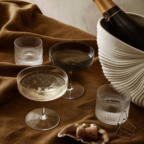 Ferm Living Ripple longdrinkglass 4-pakk. Glassene er frostet.