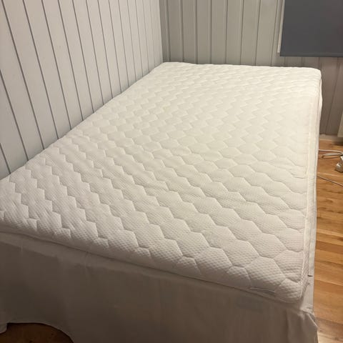 Madrassen har kun vært brukt som gjesteseng og svært pent brukt. Ingen merker eller skader på sengen. Rammemadrassen har påmonterte ben av tre. Overmadrass følger ikke med