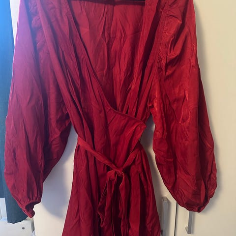 En nydelig rødfarget kjole fra Nelly! Knyting i livet og deilig stoff som legger seg fint. Perfekt til juleselskap eller andre festlige eventer. Str 36