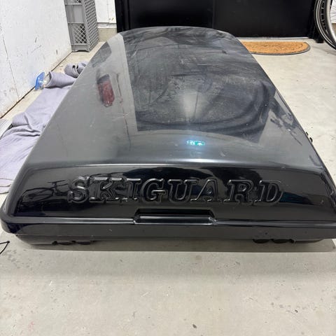 Selger skiboks med takstativ som er skreddersydd for BMW iX. Kommer med komplett nøkkelsett.