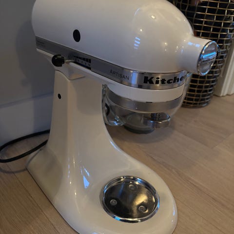 Leveres med K-visp (flatvisp) og blandevisp. Eltekrok og ballongvisp følger ikke med. Men jeg har brukt den til ulike deiger med de to vispene, som har fungert helt fint.