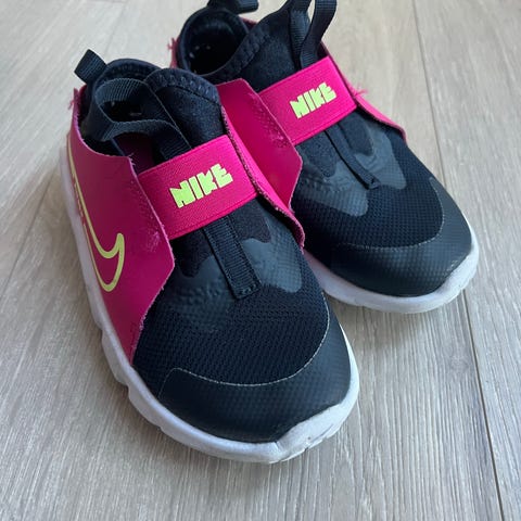 Nike barnesko i størrelse 27 for jente. Skoene er rosa og hvite, laget i materialer som gir komfort. God demping i såle.