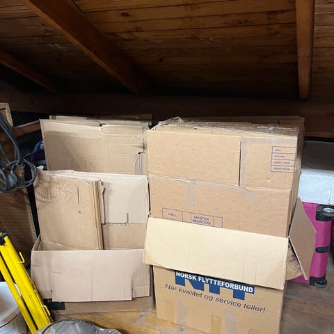 15-20 Flytteesker fra blant annet Clas Ohlson. Eskene er laget av papp og har håndtak for enkel bæring. Egnet for oppbevaring og flytting av små gjenstander.