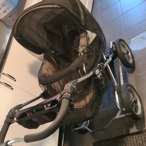 Emmaljunga sportsvogn med trekk og regn trekk.