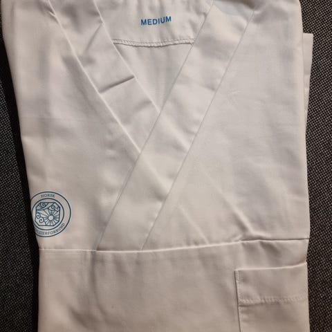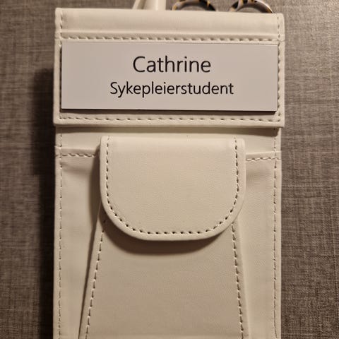 Julie sykepleiestudent? Rosa navneskilt som festes til uniformen. Nypris 200kr