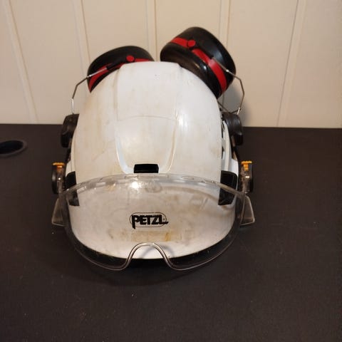 Petzl sele med tilhørende sikkerhetsutstyr inkludert koblingskarabiner og fallblokker. Utstyret er beregnet for bruk i arbeid i høyden eller klatring, og består av robuste materialer for sikkerhet og pålitelighet. Selges hbo 500