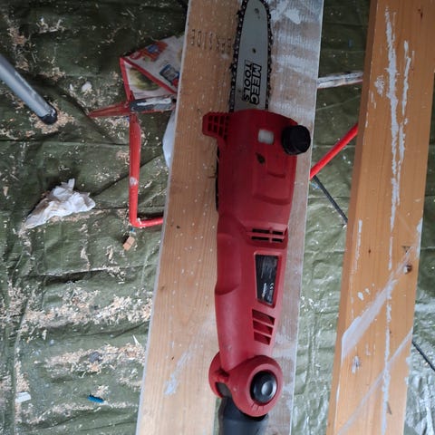 Meec Elektrisk grensag 750 W selges da den ikke blir brukt lenger, har kun kuttet en gren med denne sagen.