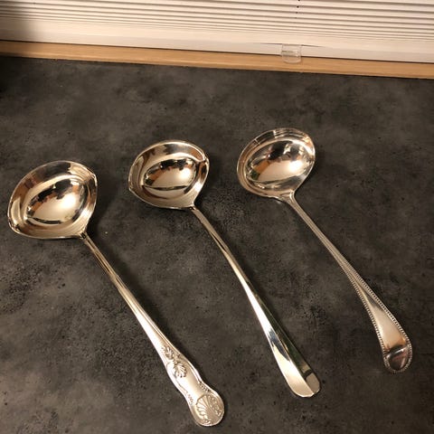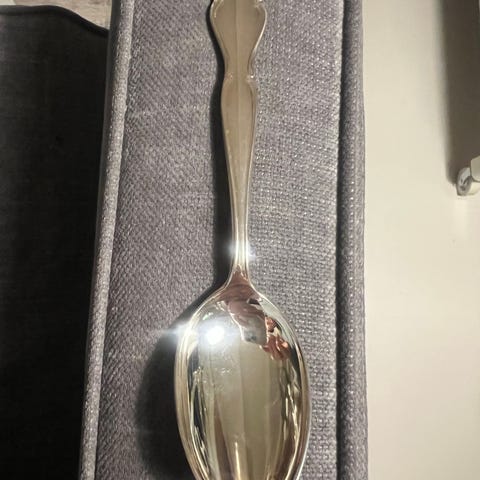 Diverse sølvplett . 1 spiseskje , 1 stor spiseskje/serveringsskje samt to kake/t-skjeer .
