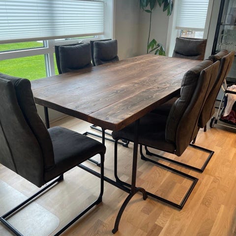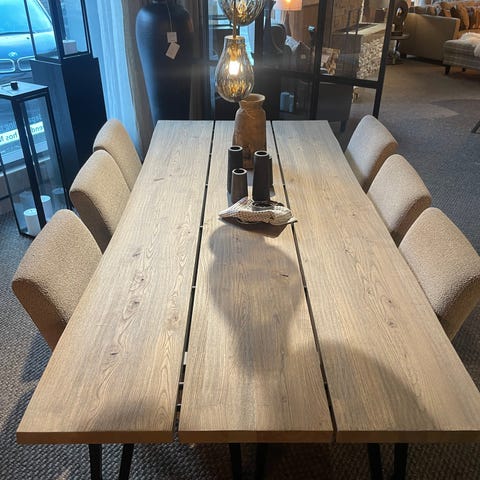 Bordet leveres nyslipt og oljet før overtakelse, og fremstår som svært pent. Ønskes annen farge, kan dette tilpasses – gi beskjed før overtakelse slik at bordet ikke oljes på forhånd. Du må da selv sørge for egen olje fra utvalget til Møbelringen.