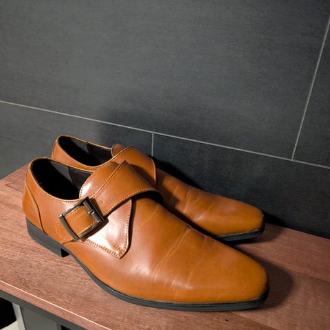 Bruksspor i form av normale bretter i skinnet, men ingen skader. Rene og godt holdt. Passer like godt til jobb, hverdagsbruk eller penere anledninger.