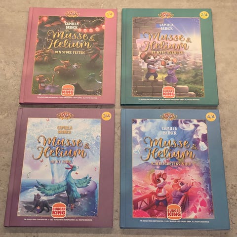 Alle de fire Burger King bøkene fra 2023. I pen stand. Selges samlet for 120 kr.