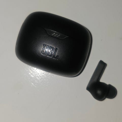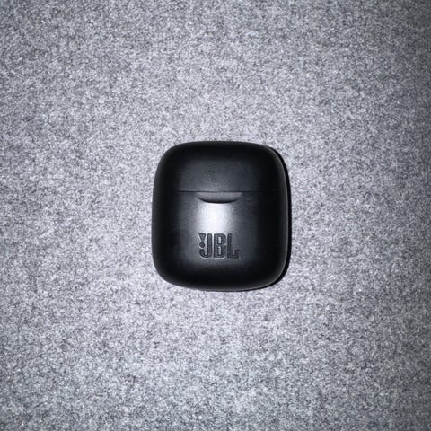 JBL trådløse ørepropper med ladeetui i svart farge. Designet for trådløs bruk med innebygd lading for enkel oppbevaring og bruk.